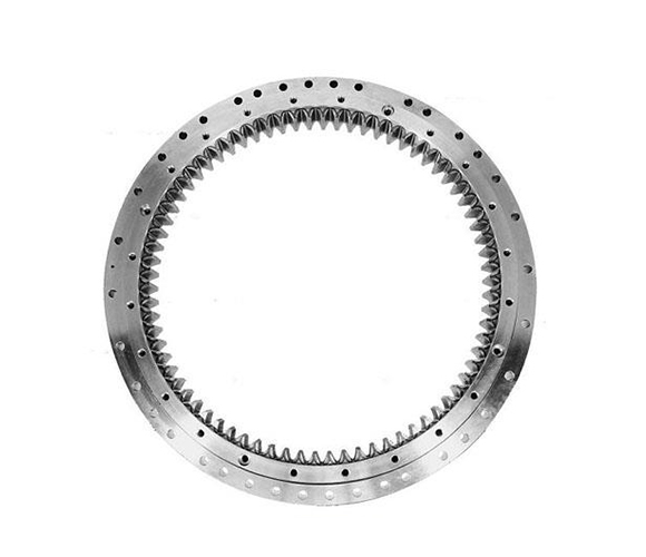 單排四點(diǎn)接觸球式回轉(zhuǎn)支承由兩個(gè)座圈組成,結(jié)構(gòu)緊湊,重量輕,鋼球與圓弧滾道四點(diǎn)接觸,能同時(shí)承受軸向力,徑向力和傾翻力矩,回轉(zhuǎn)式輸送機(jī),焊接操作機(jī),中小型起重機(jī)和挖掘機(jī)等工程機(jī)械均可選用。