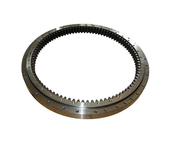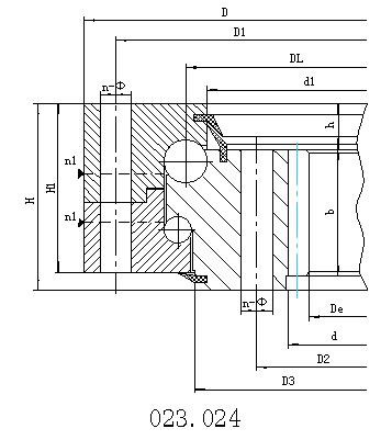 雙排球式回轉(zhuǎn)支承具有三個座圈,鋼 球和隔離塊可直接排入上下滾道,根據(jù)受力狀況,安排了上下兩排直徑不同的鋼球。這種開式裝配非常方便,上下圓弧滾道的承載角都為90°,能承受很大的軸向 力和傾翻力矩。當(dāng)徑向力大于0.1倍的軸向力時滾道須特殊設(shè)計。雙排球式回轉(zhuǎn)支承的軸向、徑向尺寸都比較大,結(jié)構(gòu)緊固。特別適用于要求中等以上直徑的塔式 起重機(jī),汽車起重機(jī)等裝卸機(jī)械上。